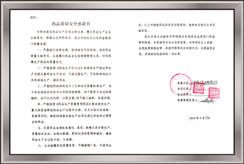 藥品質(zhì)量安全承諾書